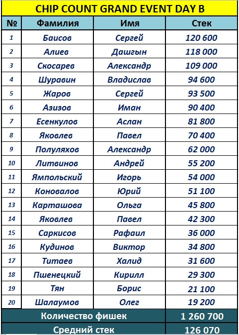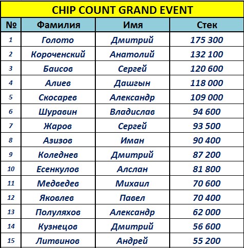 Чипкаунт турнира
