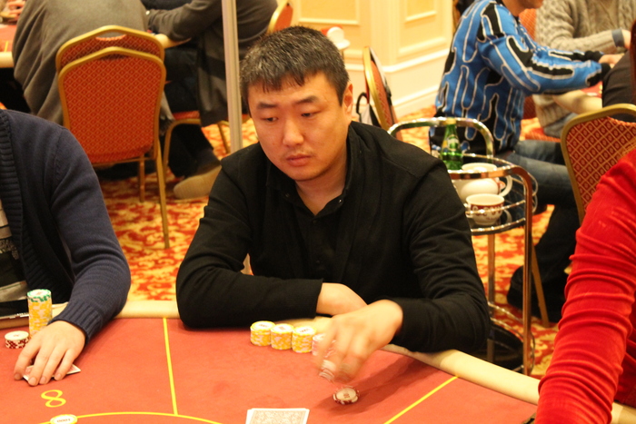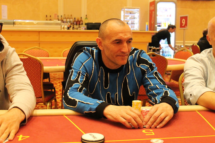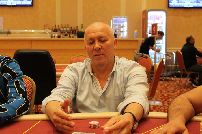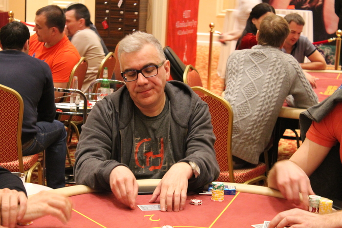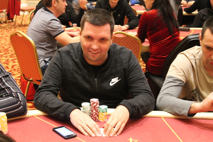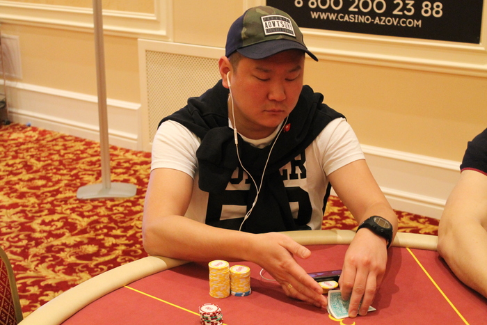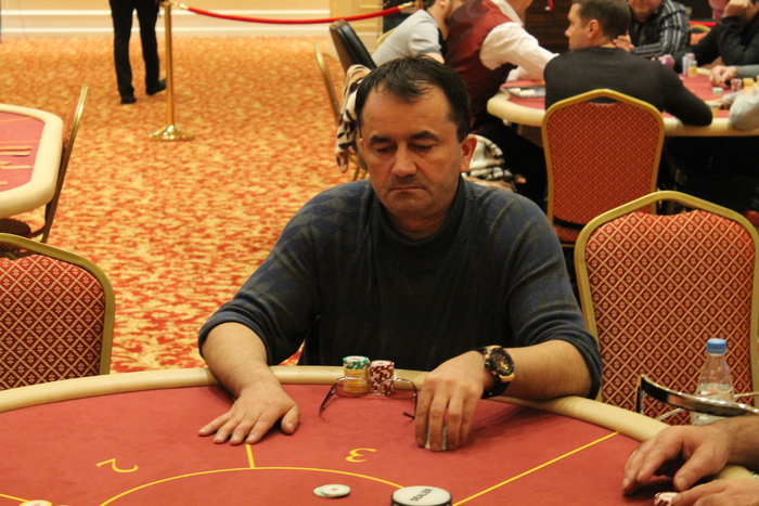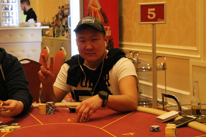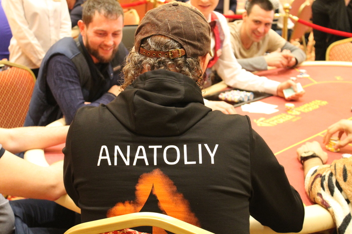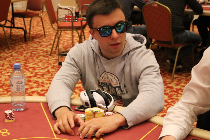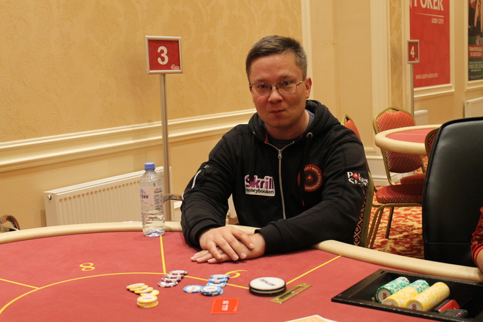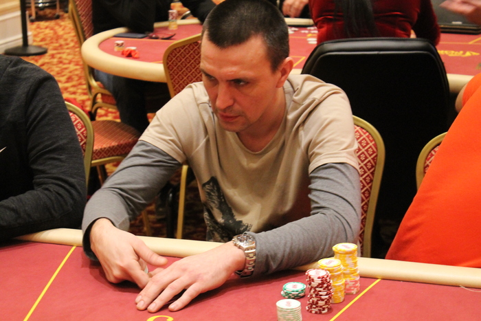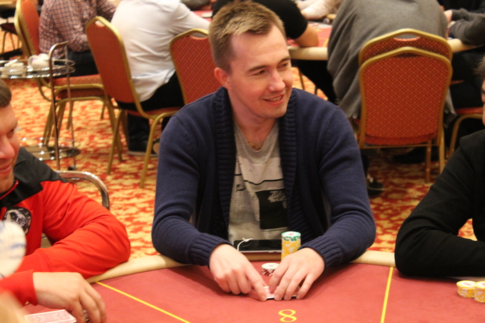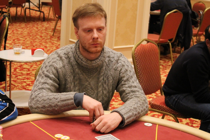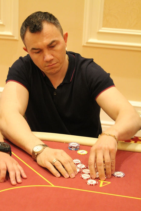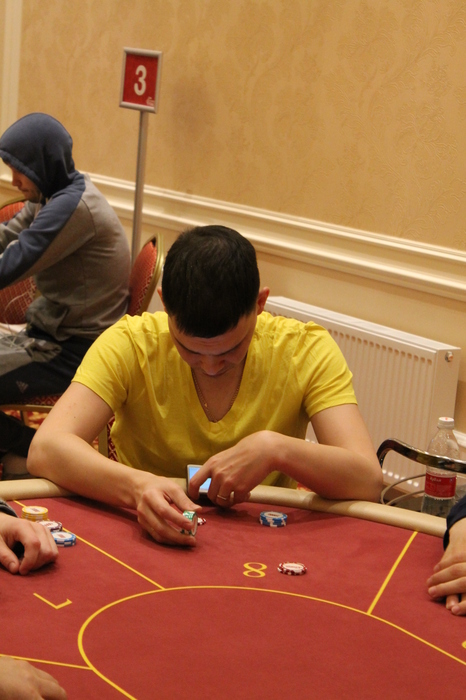 Малов Александр открыл 11К, Полуляхов Александр колл, вдвоем, флоп , Александр М. поставил 15К , Александр П. колл 15К, терн , Александр М. 21К (за спиной осталось 47К), Александр П. поставил алл-ин, после раздумий пас, Александр Малов остался со стеком в 9ББ