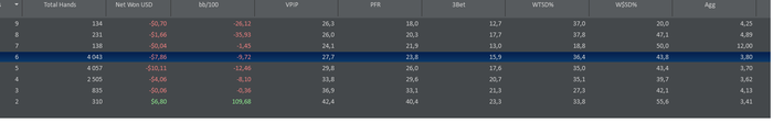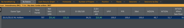 Фильтр поставь хиро префлоп 3б, что покажет на всю базу рук? Чую я, что там может быть минус. Впип и пфр у тебя большой походу как раз из-за конского 3бета.