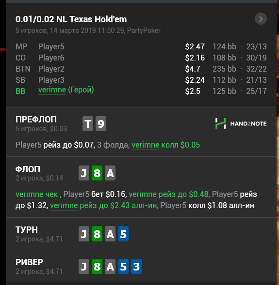 Не смог выбросить($0.01/$0.02 No Limit Holdem