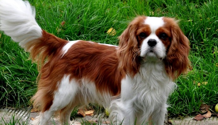 Это кавалер кинг чарльз спаниель. Она конечно не лабрадор,но и не из тех трясущихся созданий постоянно получающих люлей от уличных кошек )