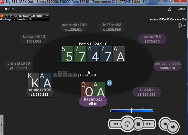Кстати ,кто что скажет про покер дом?,поляна очень слабая,как показалось ,без статистики не привычно,но тащиться норм)а началось мое знакомство накануне ,задепал я вечерком 5000р на работе,решил в кэш зайти ,на 15-30.Причем сел за стол ,где человек был с меткой фиша,видимо,как то очень давно метил.И тут вторая раздача,я на бб две восьмерки (3 человека за столом) рейз,какой то гигантский 3бет от рыбы,ну ладно кол ,рейзер отваливается,доска 376 радуга.И тут в нас ал ин ,7000р,у нас 4000 в стэке .Заебись думаю ,щас вколить увидеть тузов или королей которые они могут,так разыгрывать и все,ну моя проблема ,когда я не вижу логики ,то я жму кол как бы вы поступили???