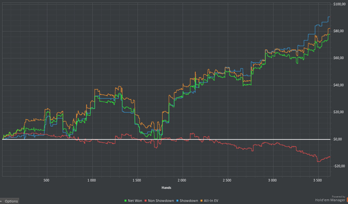 Микс 5-10 в этом месяце. Получилось что то в районе 10бб/100, но еще 10бб/100 потерял на экспериментах, особенно в последнюю неделю, когда начал пробовать различные сайзы. Форхалей был прав, все хуйня.