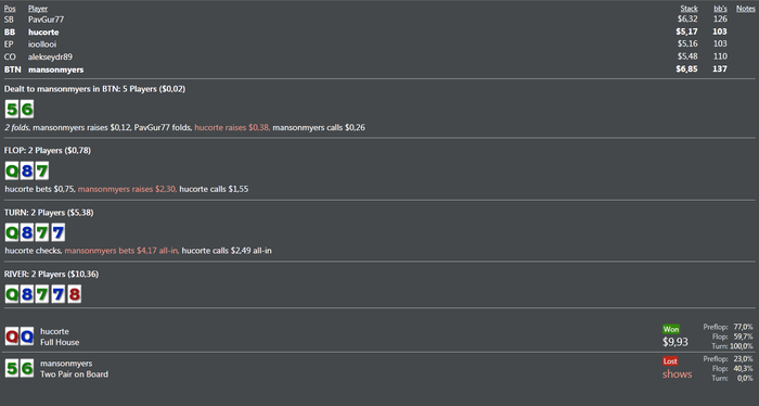 profit77788, против фишей буду теперь пушить монстр дро, так у меня перевес по эквити, а так не доедет, переедут, ну нафиг, лучше так выйграть, чем никак...