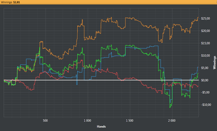 В общем решил что-то менять в игре, результаты совсем не устраивают, по ев где-то 4,5бб/100 по факту 7,5бб/100 не понимаю почему разрыв такой конский, вроде как жестко никого много не переезжал, скорее всего выигрывал монетки на динамичных позах. Начал полностью перестраивать хад, он у меня был не очень репрезентативный и не удобный, приходилось открывать много поп-апов, некоторые из которых даже в окно не влазили)) А смотрел я там 1-2 показателя. В общем сейчас изучаю страту, предоставленную Castor-Troy, за что ему огромное спасибо, что поделился годнотой) Завел себе тетрадку с изображением акулы где делаю конспекты по стратегии. Потом отрабатываю на практике, надеюсь скилл поднимется, хоть пару бб/100)) И уже побью этот долбанный нл 5)