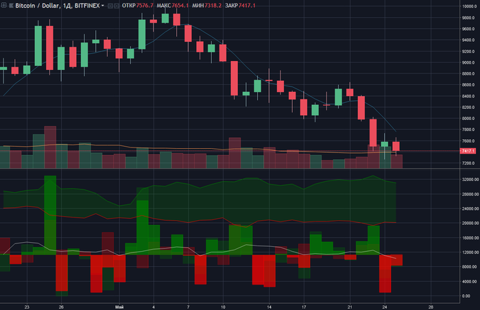 Так вот. Ответа на вопрос почему всё катится вниз я для себя не нашел. Единственный вариант, возможно, все ждут выхода битка из треугольника вниз.