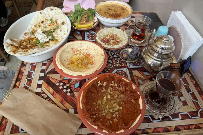 Ливанская кухня отвечает за мезе - закуски которые намазываются на лепешки. Как правило это вариации овощей и злаковых: хумус, перетертые баклажаны, перец, оливки и т.п. Это фишка заведения и большинство посетителей приходят есть именно мезе.