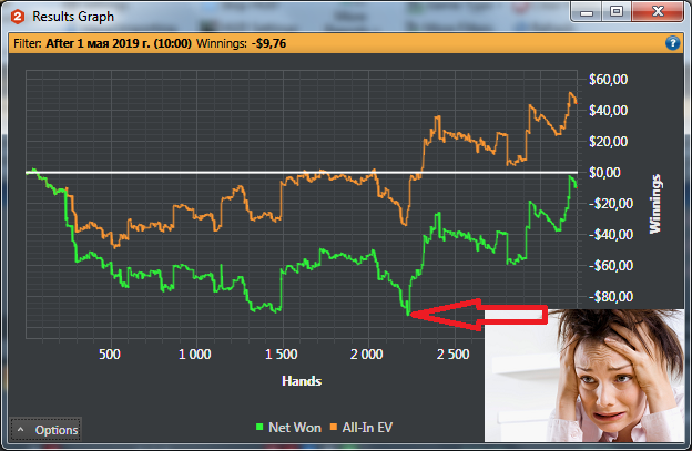 Я так и не понял его пуша на ривера. То ли настолько отмороженный что вельюбетит по такой доске в 3бет поте где куча стритов и сетов старше, то ли настолько тонко превращает хорошую в блеф.