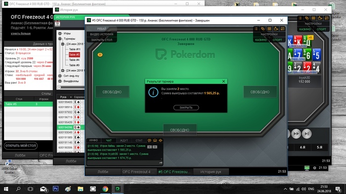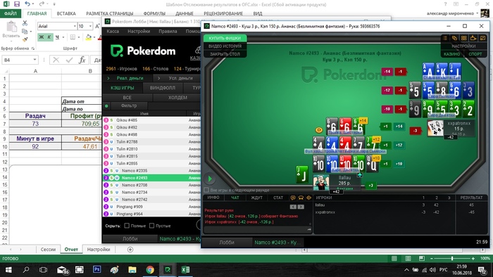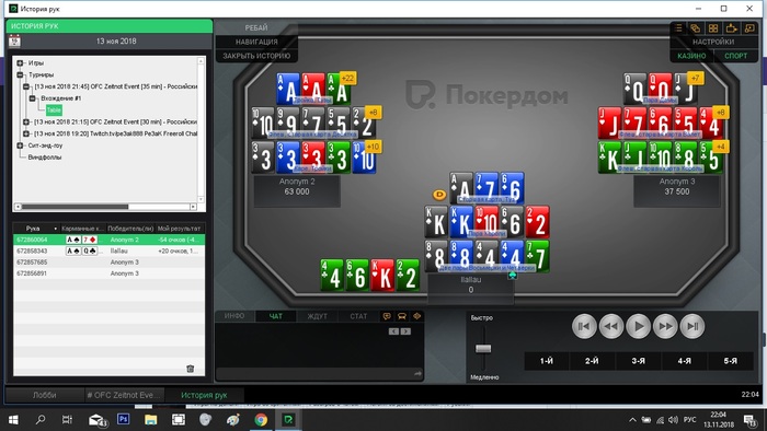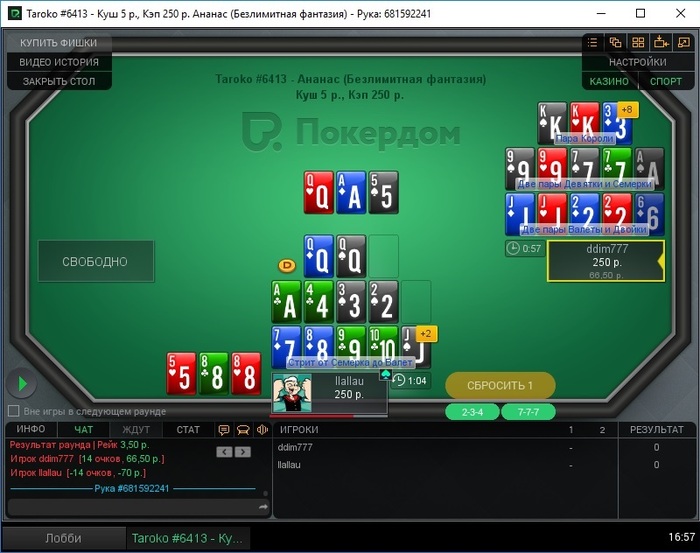 Один из последних скринов, против фанты, КД о5 же собирал.... но я тут вышел со стола в + 150 рублей, и опп сам сбежал )))