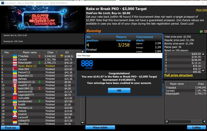 Хорошо воскресенье отыграл, обидно, конечно, перед самой финалкой вылетать, но результат всё равно достойный В другом нокауте тоже задипранил, тоже было близко