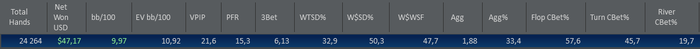 Низкий ввсф означает что сдаешь банки без борьбы,фолд на 3 бет 40% это вообще ахтунг учитывая что поле в среднем 3 бетит по 2,5%. Ну и наверняка блаинды отдаешь на стилы больше чем надо.