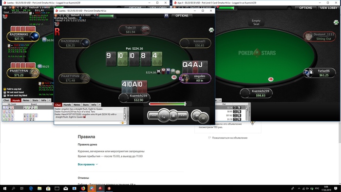 Была одна раздача где оп открылся мин-рейзом, я колл. На флопе К44 он запушил 160бб в меня, а я сижу довольный с ККхх и не понимаю как такое счастье мне присыпало
