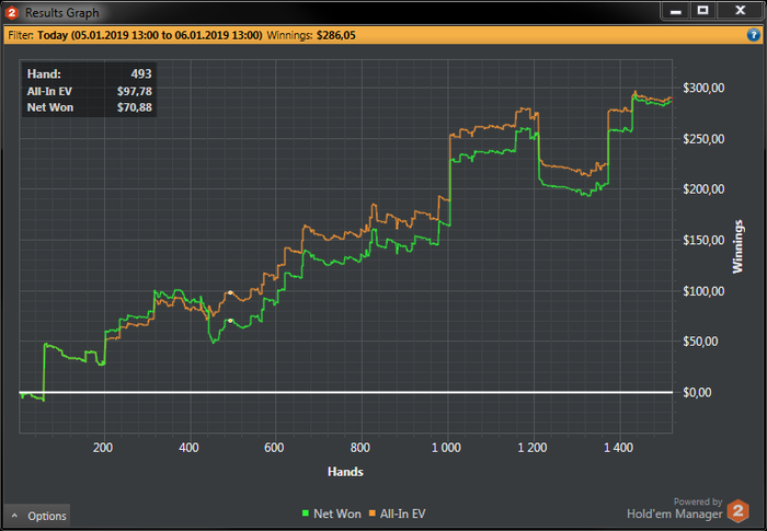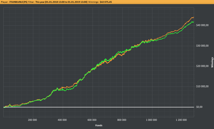 Правда относительно 2017-го, профит остался на прежнем уровне, но здесь я сам виноват. Не нарастил банкролл, не поднялся по лимитам.