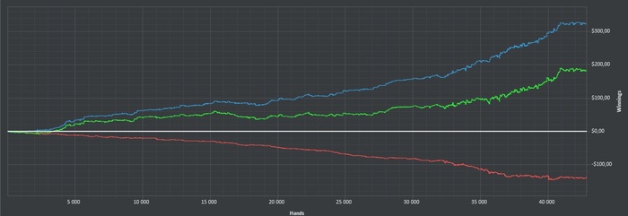 Еще нашел жесткий лик , игра в мультипоте , я мало блефую в мультипоте с каким-то сильными бекдорами , либо мало ставлю 2-3 пары/ноу майд хенды для кражи эквити оппов , но я начал это исправлять. Стал чаще блефовать в мультипотах и понимать что я выбью и когда стоит это делать.