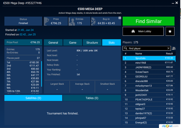 DVS, если что я случайно минус поставил) У меня на старзах даже утром самый маленький турнир это 250-300 человек, что уже немало, все остальное больше) И если на пати набивая 10 стартовых и попадая в 10% оставшихся игроков это почти всегда предфиналка-финалка, то на старзах это всегда минитм 1,5 би и нужно ещё кучу флипов выиграть что бы до тех же денег добраться)