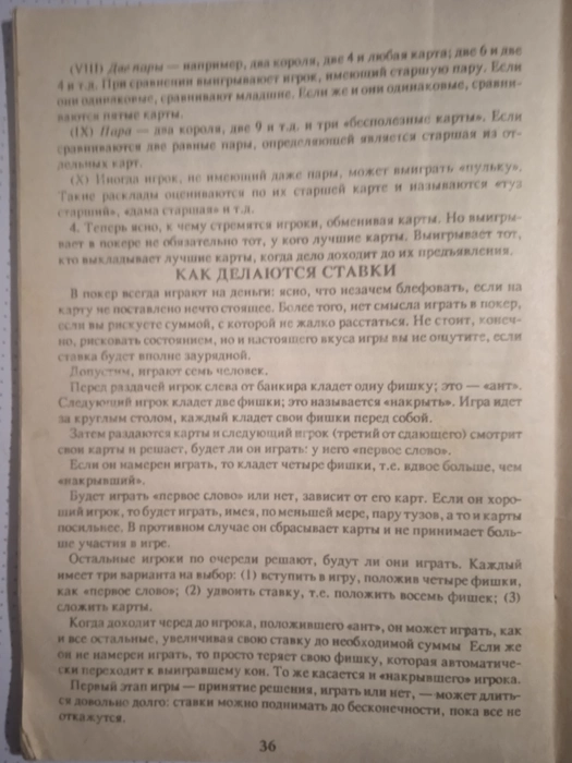 Скажу честно, даже сейчас зная правила покера, и в частности пяти карточного с обменом разобраться в нем по этому альманаху тяжеловато. Попробуйте сами