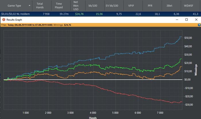 Пару раз блефовал на стек, но пацаны с ТП говорят:"А зачем я еще проделал этот путь?". Лень играть больше,хотя, читая вчера блог Инвока, впечатлился тем, что он в свое время нл100 20 столов по 10ч в день катал. Игра в таком режиме чем-то на завод похоже, на котором я-какой-нибудь оператор станка или конвейера. Зато нет начальства. Начал НАРУТО смотреть с нуля, ибо в детстве этот момент как-то упустил. Так что. если заставлю себя часов по 8 хотя бы нл2 катать, то думаю, что смогу к осени стать хокаге. Нл5 играть опять не хочу, кажется, что проще бр на нл10 на двойке набить,обойдя пятерку.