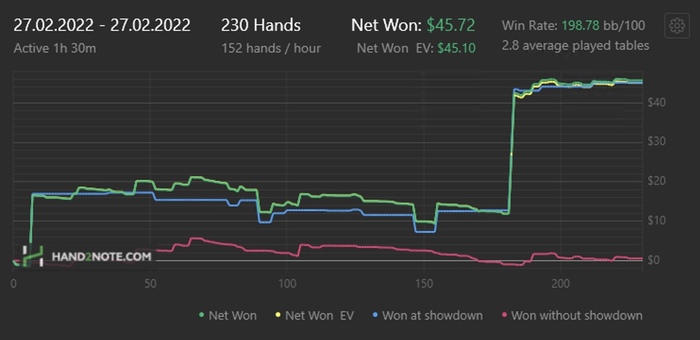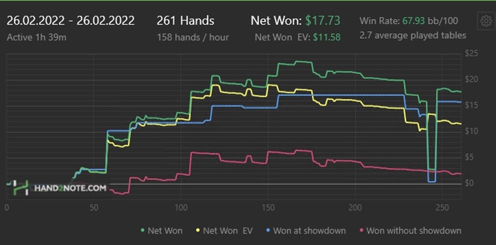 Day: 779 hands, 5,54 min, -25,87$, по EV -39,96$