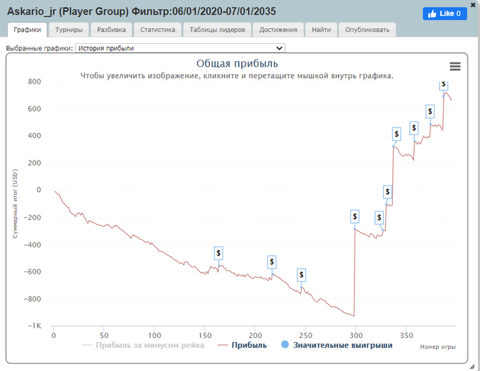 По результатам вот так: Июнь вообще не складывался до конца месяца, летел на пике 800 баксов (150 БИ) (потом отдало, но не доехал в крупные деньги к сожалению)