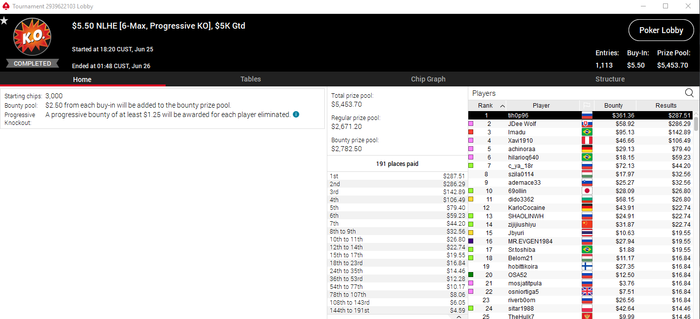 В воскресном мини гладиаторе за 11 в килополе 3к, к сожалению вылетел против фиша АА в Q8 за рабочий стак, на флопе поехали).