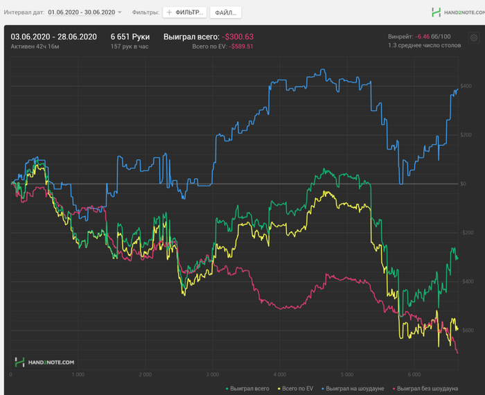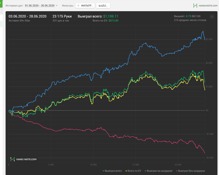 Июнь.В общем месяц в плане покера получился провальный. Откатал полных дней около 11-12 наверное, под конец месяца катал сотку но составы днем настолько ужасные были , что выгоднее наверное катать полтос)). Чему свидетельствуют топ-топычи этих лимитов, +- там одинаковый профит получился у ребят.
