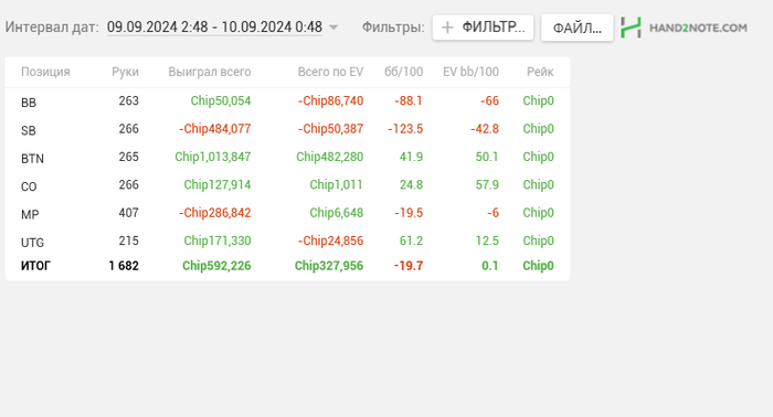 Дневник завел для самоконтроля, разбора раздач и общения. Всем удачи и будьте здоровы!