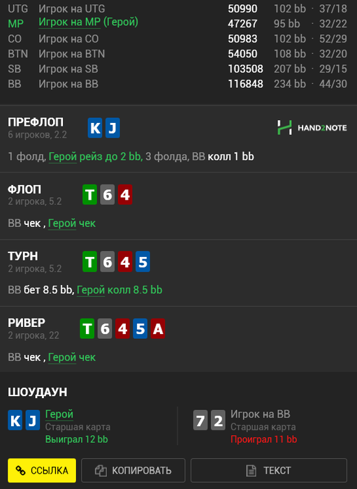 % чтобы в блеф не получать рейз. С увеличением сайзинга уменьшается частота чек рейза. Ривер заставил пересмотреть план, так как теперь бьем все ТП, допера...