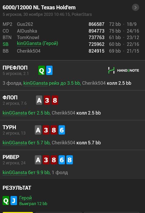 Hand converted by Holdem Manager 3BTN: 4,982 (83 bb)