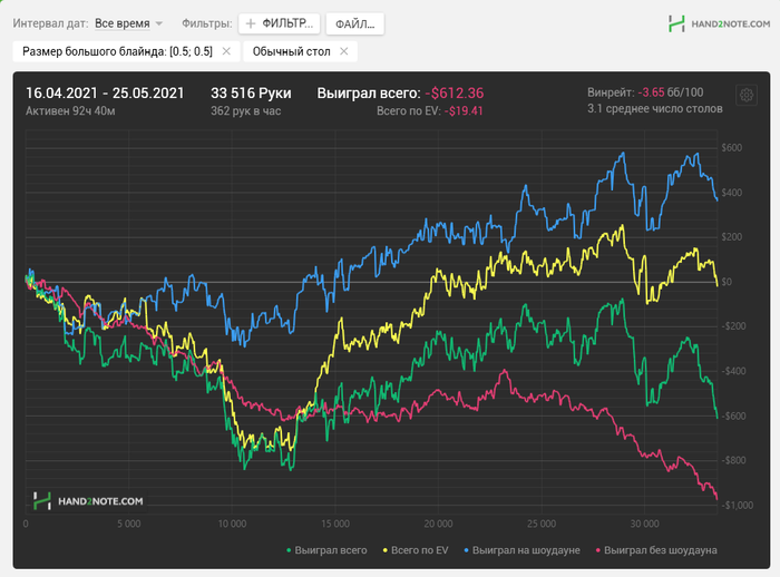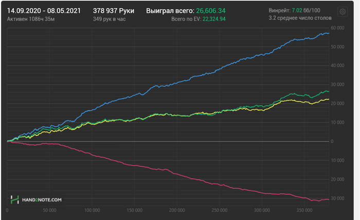 Результат порадовал. По сути это первая нормальная плюсовая сессия за всю дистанцию что я там отыграл, а это к слову почти 11к раздач.