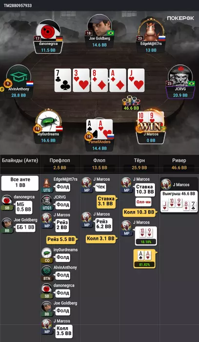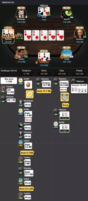 Еще заметил что много перефалживаю на агрессию, вот например чел лепит 2 банки в такой флоп, были конечно мысли заколоть, но я хз что вот тут делать против агромакак готовых за нок на все. Может перестать просто ноки играть?))