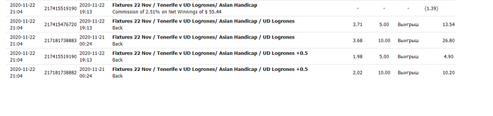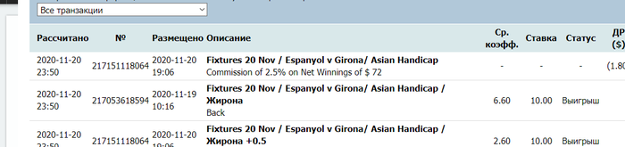 Эти выходные -2 флета. Последниие пару недель играю на средних командах и средних коэфах. 16 ставок было в этот Уикенд. Куча возвратов. Минус больше из-за того что на уверенные ставки лил двойной флет и парочка слетела по 40$.