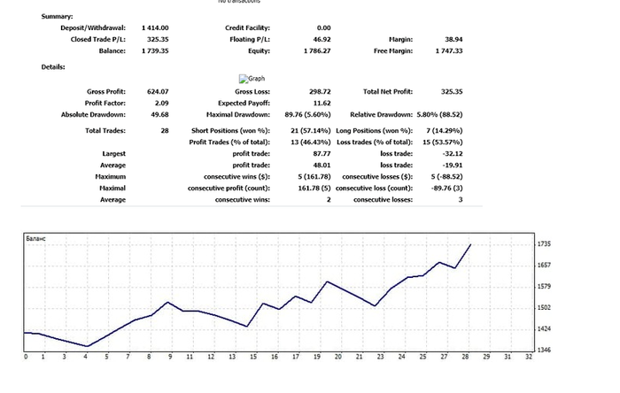 Я не хочу тебе показывать большое количество сделок, так как по всем сделкам (точки входа и выхода) можно определить паттерны нашей ТС