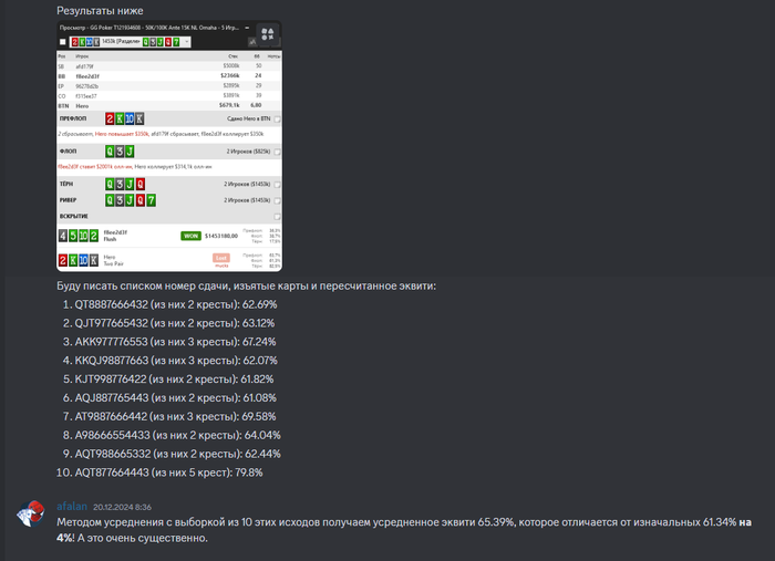 Ну а теперь немного про теорию PLO и эффект кард ремувала и про погромирование с чат ГПТ.