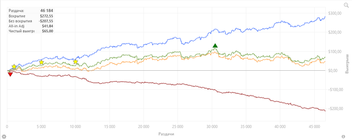 Но вот низ, это моя боль. И как следствие я либо недобираю, либо не сижу и с недоумением смотрю на результат раздачи.