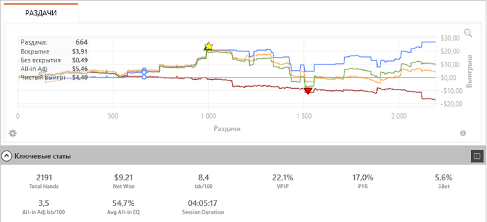 Зачпокал сегодня 1-й личный рекорд по количеству сыгранных рук и времени.