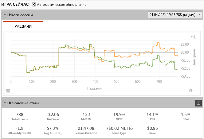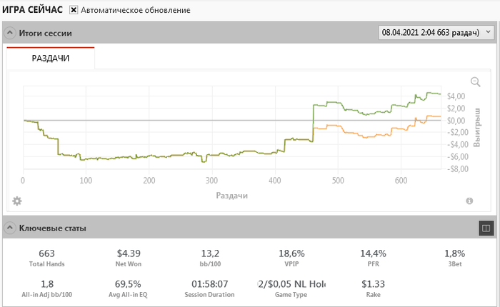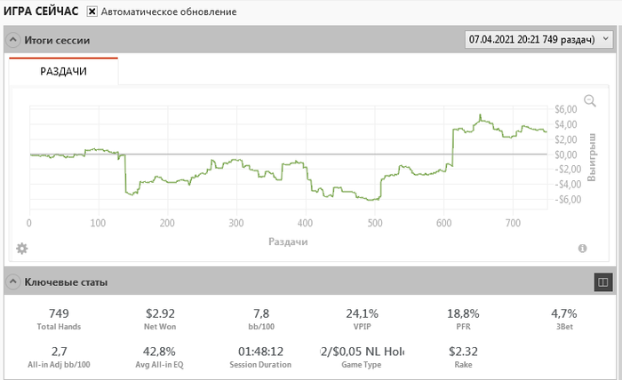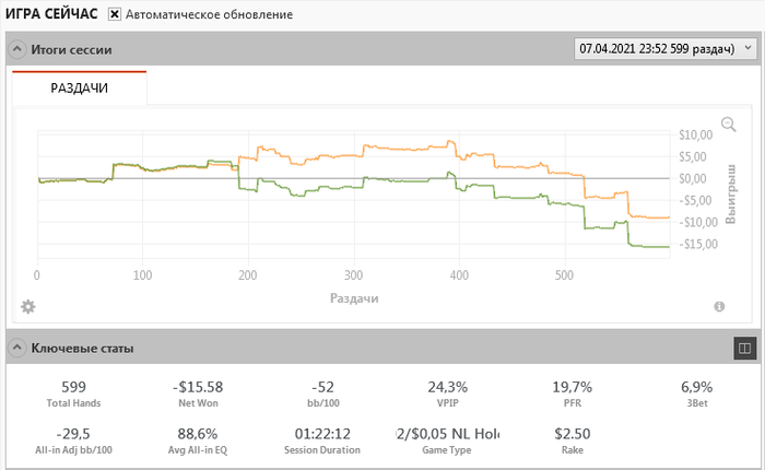 За эту раздачу я получил перебор по эквити (видно на нижнем графике). Именно по этому я считаю что все это хрень.