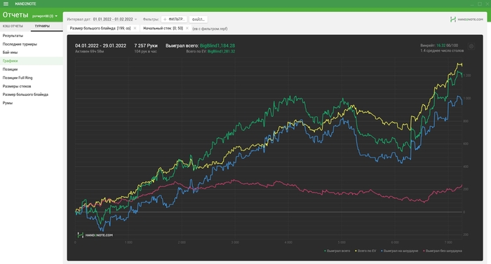 вообщем я хочу сказать что нужно играть хорошо + мультирумить, у меня сейчас все турниры это нокауты, получается я отыгрываю за день около 30 турниров и все KO, средний АФС 2000, аби 10+ и у меня везде плюсовое ожидание, а на счёт везения я не парюсь во все, просто делаю свою работу хорошо, а как там карты упадут меня не сильно волнует) т.к знаю что дальше больше, буду наращивать свой склилл и график по всем румам)