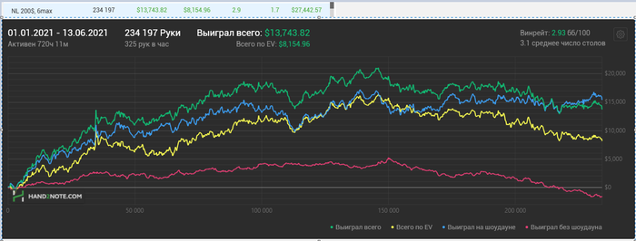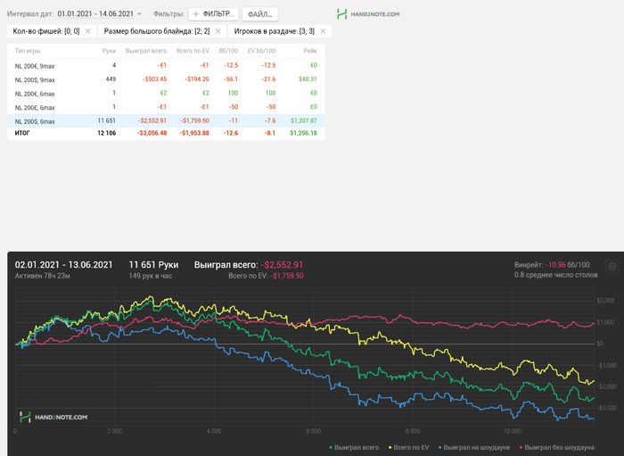 Короче я решил уйти поиграть на нл100 СХ и понять, есть ли у меня какой-то винрейт. Игры там должно быть больше, а реги должны быть слабее. Учитывая какую школу регваров я прошел на 200 и как зарубался со всеми подряд, мне должно быть там не так тяжко, заодно выясню гожусь ли я на 6макс столы или нет. Если нет, то буду брать тренера!