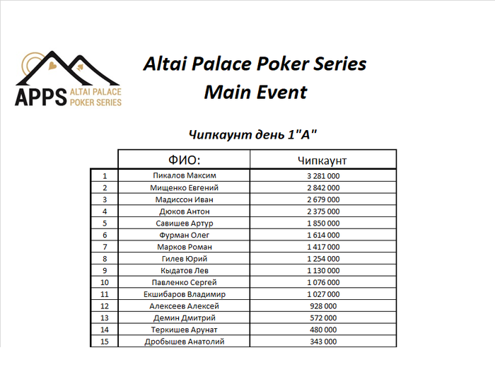Следом за первым днем Main Event Д1, начался еще один важный турнир летней серии APPS - турнир Хайроллеров, Д1. Гарантия 25 000.