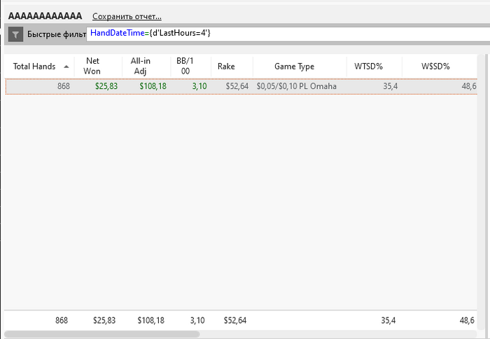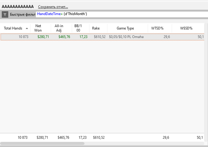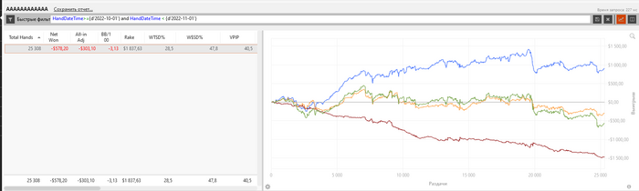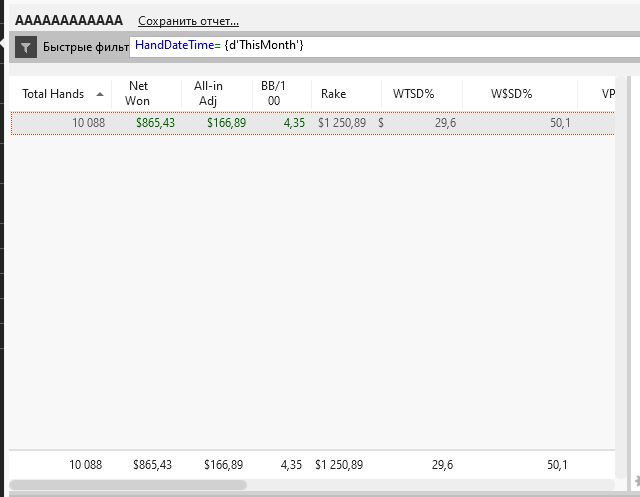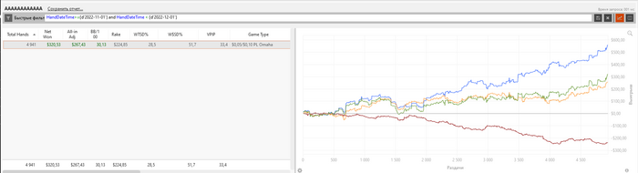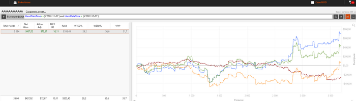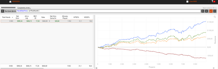 А пока промежуточные результаты (кстати фактические могут отличаться , трекает не все руки, из за особенных столов со всякими извращениями типо страдлов и двойных бордов, по бекингу к примеру не хватает 200 долларов )