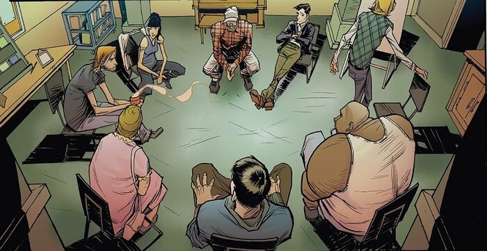 Ты заходишь в зал, садишься на стул в центре круга , и вместо верещания о том , что ровно в свои 33 ты дал себе обещание , не делать ставки и так далее, хуй знает о чем там обычно разговаривают, говоришь , что сегодня ты стал на год старше, всем спасибо и прощайте , аккуратно закрываешь дверь, которая держится на соплях, выходишь на улицу и вдыхаешь воздух свободы )