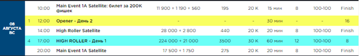 Рассадка Opener на второй день (45/364). Средний стек - 243К. Блайнды: 4К/8К.