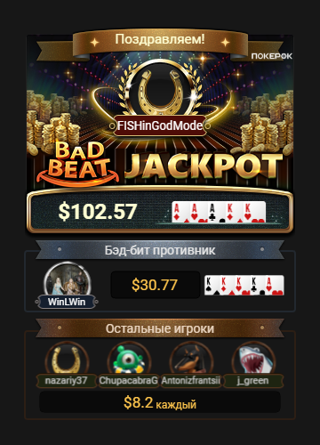 Покерок насыпал немного кешбека. Особенно радуют автоматические турики, где дают кеш баксы. Но правда все это я потратил на турниры, каюсь, пару раз не сдержался и зарядил в эту лотерею))