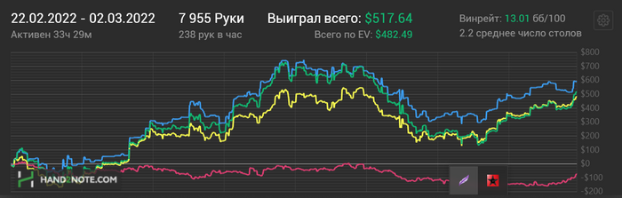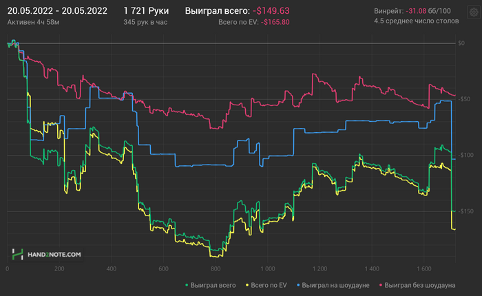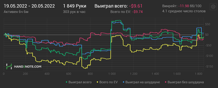 Но как-же приятно вернуться в конце хотя бы близко к 0 за последние 600 рук