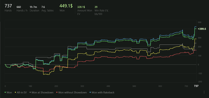 Начал понемногу подключать с марта ИП(айпокер). Пока в среднем нл100. Первые 60к рук примерно пробовал катать Айпокер без селекта. Просто садился за 9-12 столов и не вставал сессию.