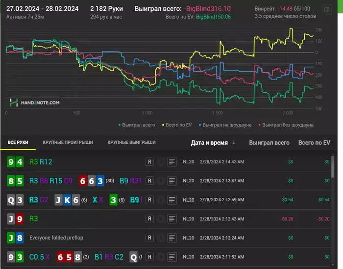 Начал отчетный месяц с того, что решил больше катать, три раза в неделю заниматься спортом, больше стараться гулять, общаться с людьми и не замыкаться только на покере. Первый раз закончил неделю в плюс. Отыграл 30 часов. Не чувствую, что устал, хотя в том месяце у меня за весь отчетник было 80 часов наигрыша, а это 4 недели. Начал принимать совершенно неочевидные решения. Замечать ситуации, в которых стоит проявлять агрессию даже на овербэты. Такое состояние приносит приятные эмоции. Выводы, которые были сделаны из опыта прошедших двух замазочных месяцев таковы: