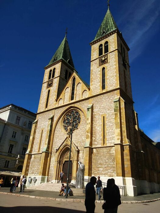 Как вы можете видеть, в мусульманской БиГ прекрасно сосуществуют разные конфессии и культуры. Тут рядом мечети, православные и католические храмы, как минимум, одна синагога. Нет этого грёбаного навязывания, во что хочешь, в то и верь, культурная европейская страна. Удивительный контраст когда рядом видишь девушку в коротком платье и женщину в закрытом никабе, где закрыто даже лицо, только узкая щёлочка для глаз, как амбразура))