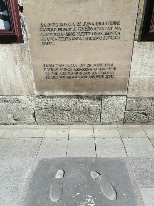 Место убийства австрийского эрцгерцога Франца Фердинанда сербским студентом Гаврилой Принципом. Образно говоря, это место с которого началась Первая Мировая Война. В Сербии Гаврила Принцип - герой, на одной из главных улиц в моём Крагуеваце есть даже граффити, ему посвящённое.