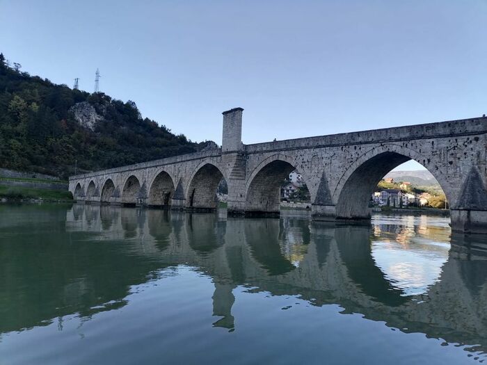 Последним пунктом нашей поездки стал боснийский Вышеград, расположившийся по берегам реки Дрины, близ границы с Сербией. Это маленький туристический городок, с населением всего лишь 10К людей. Однако для туризма он очень подходит. Успели поужинать в местной кафане, прокатиться по Дрине всего лишь за 250 руб (по русским деньгам) с носа на катере, полазить по местным красотам)