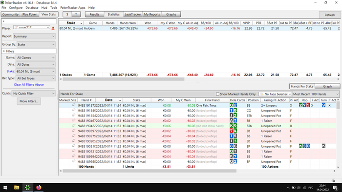 это все одна игровая сессия 1600 рук результат -6,5 байинов